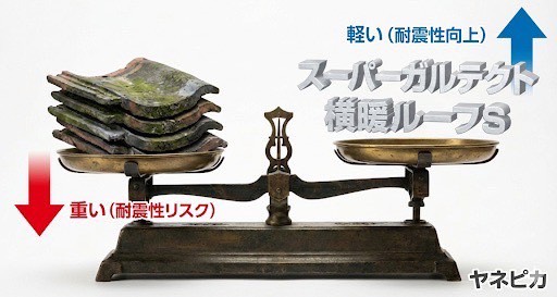 これに対し、断熱材入り金属屋根材であれば約500kg程度に抑えられます。この「重さの天秤」の差が、建物全体の負担を大きく変えるのです。
