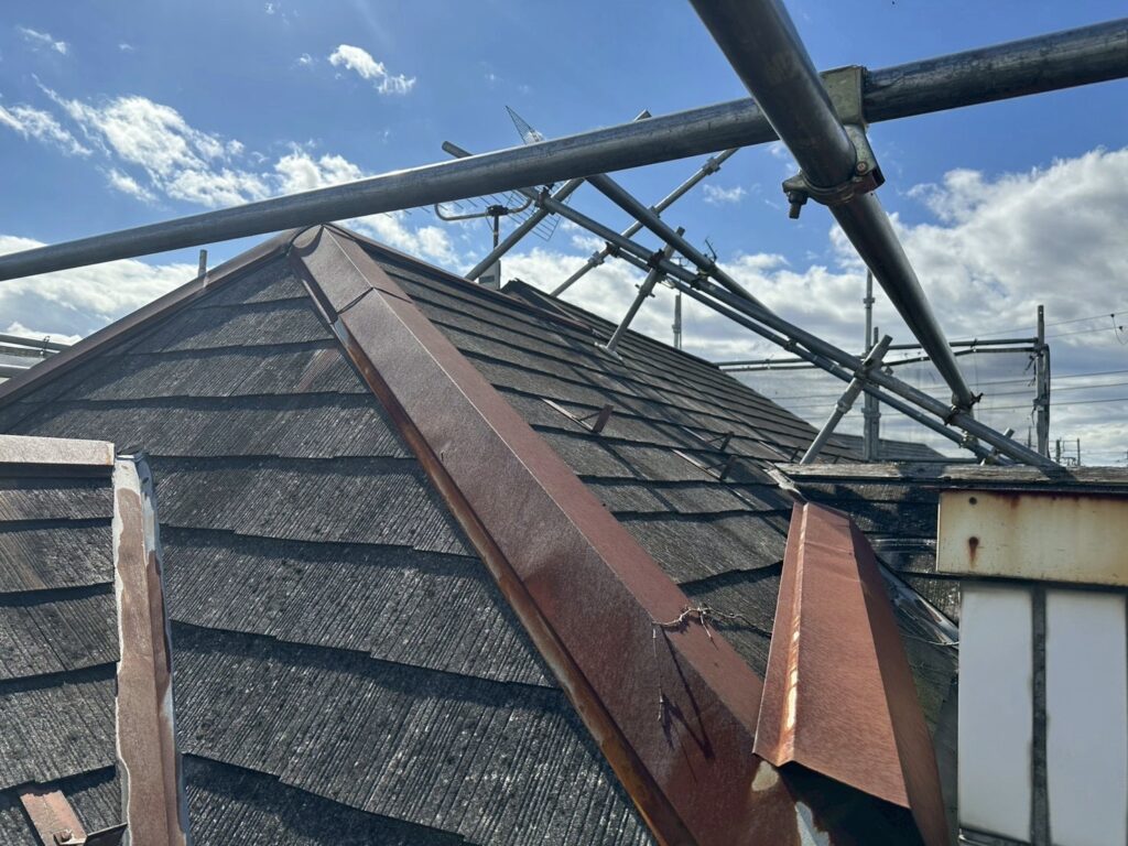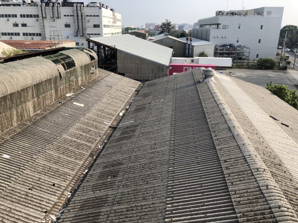 屋根スレートや外壁材のほとんどが白石綿を使用しました。