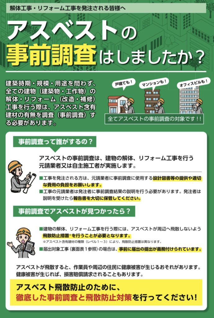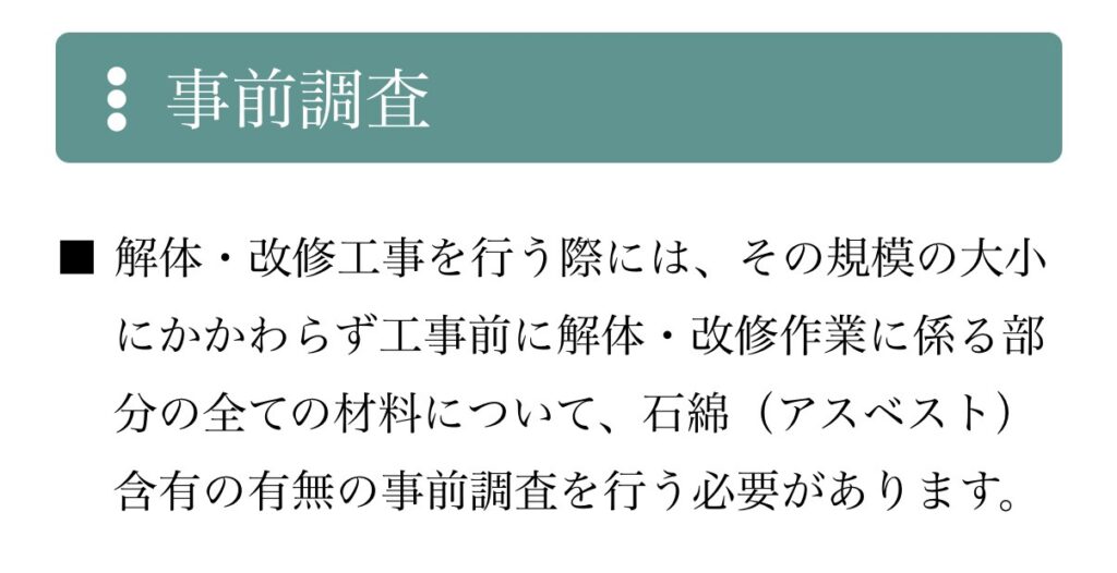 事前調査の掲示や湿潤化・手ばらしの徹底が義務付けられています。