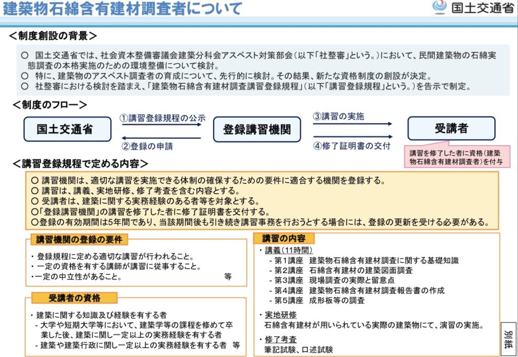 現在は、有資格者による事前調査と適正な施工が法令で義務付けられています。