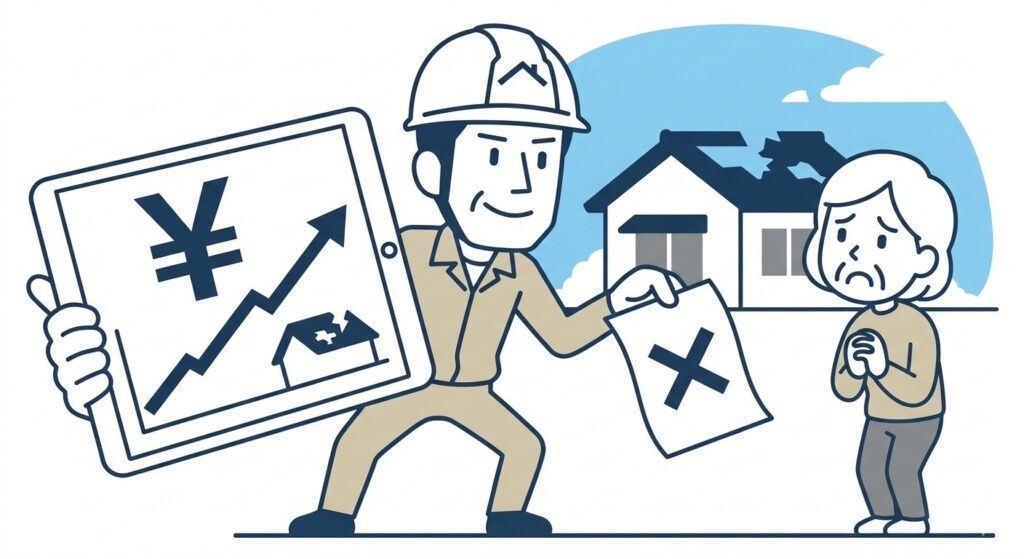 強引な勧誘や、その場での契約を迫る業者には十分な警戒が必要です。