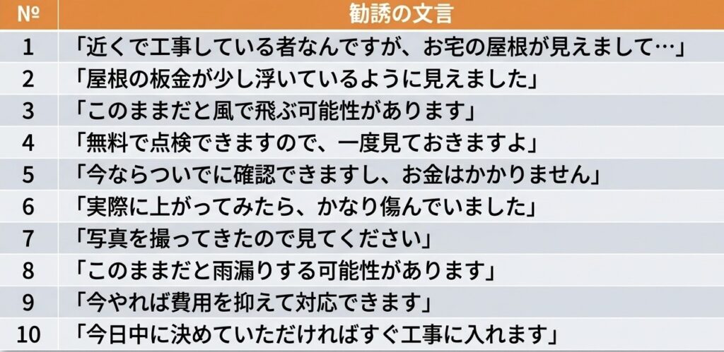 屋根の点検商法においても、訪問してくる人物の背後にこうした構造が存在している場合があり、見た目だけでは判断が難しいのが実情です。