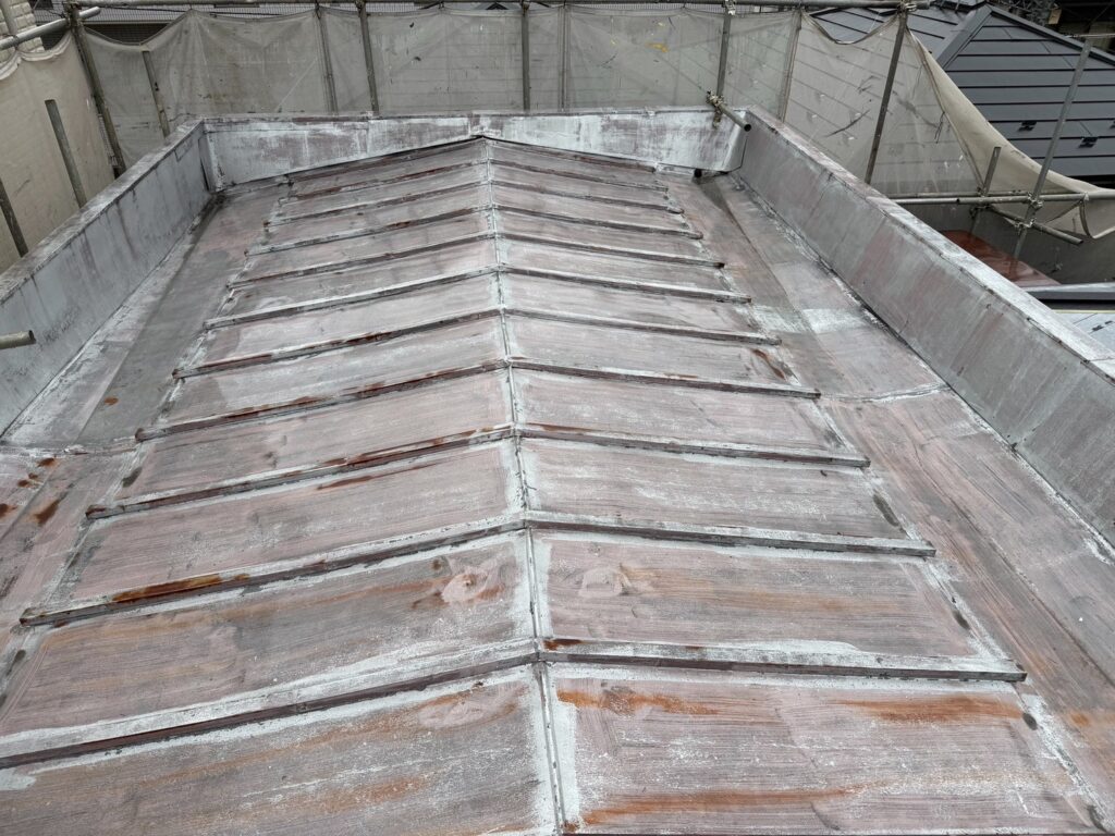 この高さにある屋根材の割れや板金の浮きを、地上から正確に把握することは不可能に近いことです。