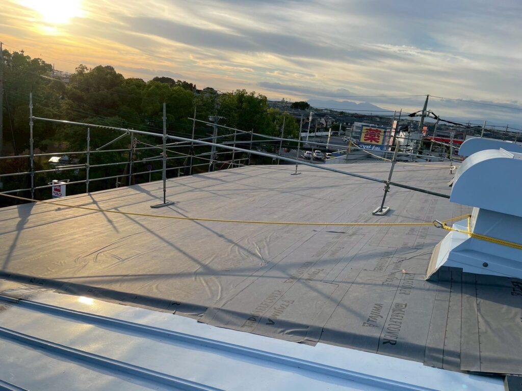 下葺材の取り付けです。今回の屋根カバー工事に使用した下葺材は田島ルーフィングのタディスセルフカバーという商品です。