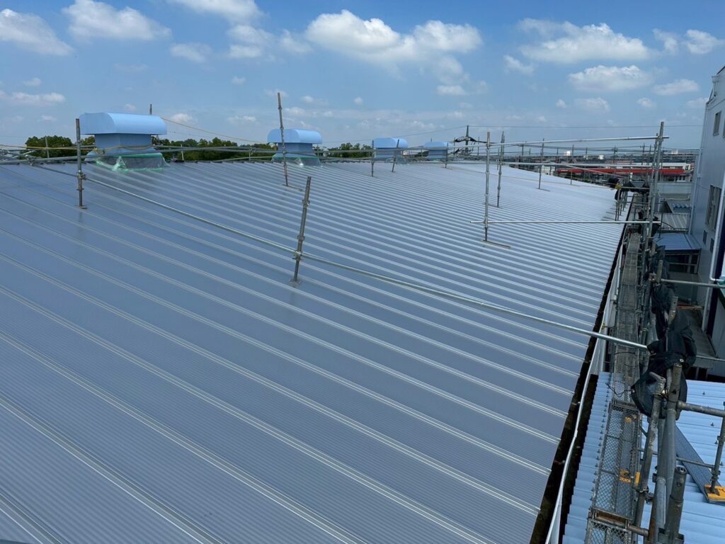 既存金属屋根は20年程度前まで倉庫や工場等の屋根によく使用されていた金属屋根の中で代表的な芯木無し瓦棒という屋根材です。三晃式などと言われる事もあります。