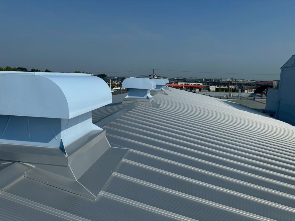 ベンチレーターと呼ばれる換気部材の周りの役物を取り付けして屋根カバー工事は完了です。