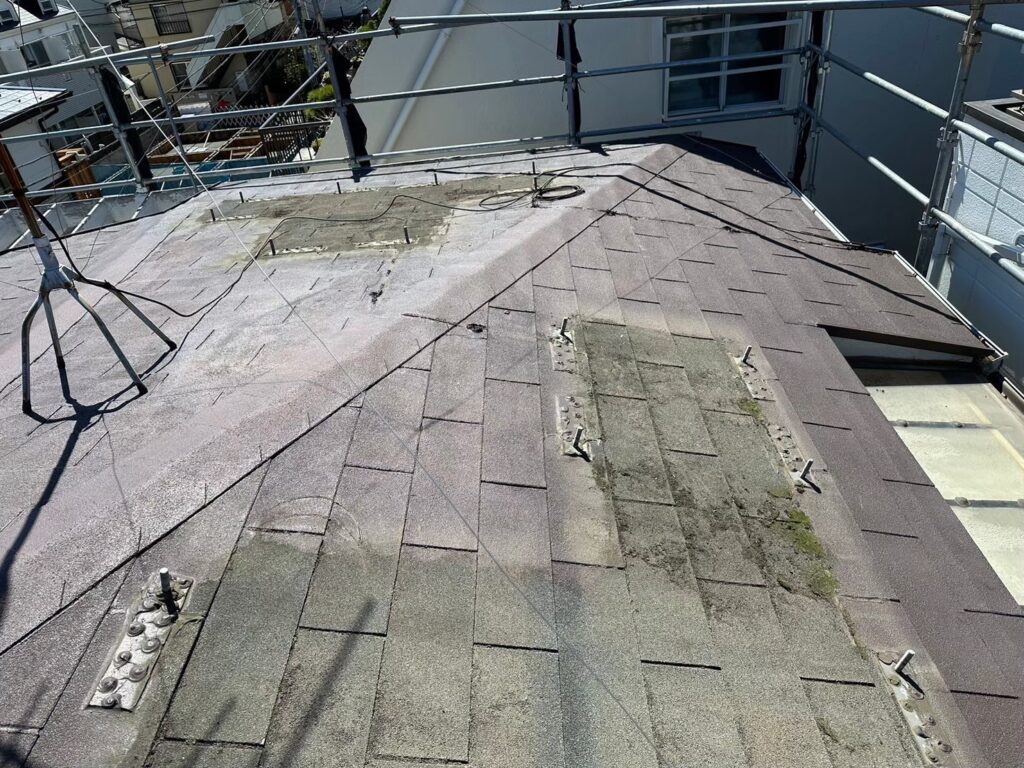太陽光発電パネルが載ったアスファルトシングル屋根材の工事のご依頼でした。