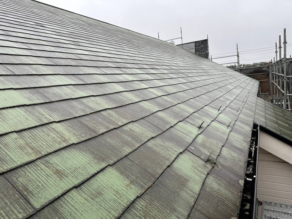 屋根の表面にかなりコケが生えており屋根改修の時期が来ておりました。