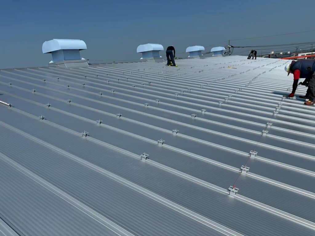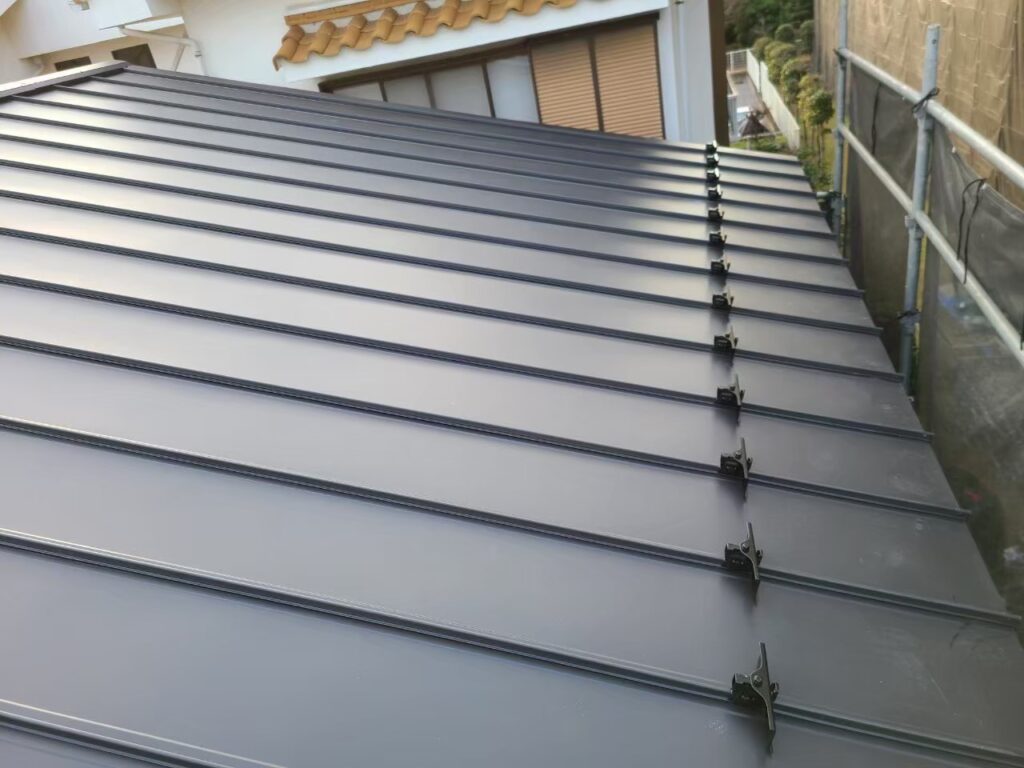 断熱材一体型金属屋根は、断熱性・遮音性が高く、人気が高いです。